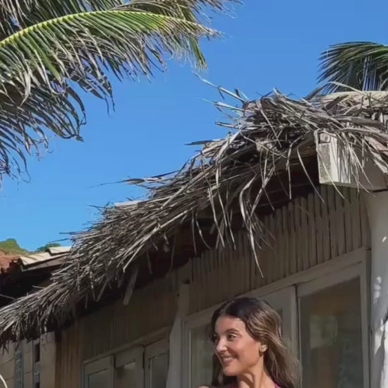 As amarrações no pescoço e nas costas garantem ajuste ideal ao corpo, permitindo versatilidade no uso e adaptação perfeita para diferentes tipos de busto.