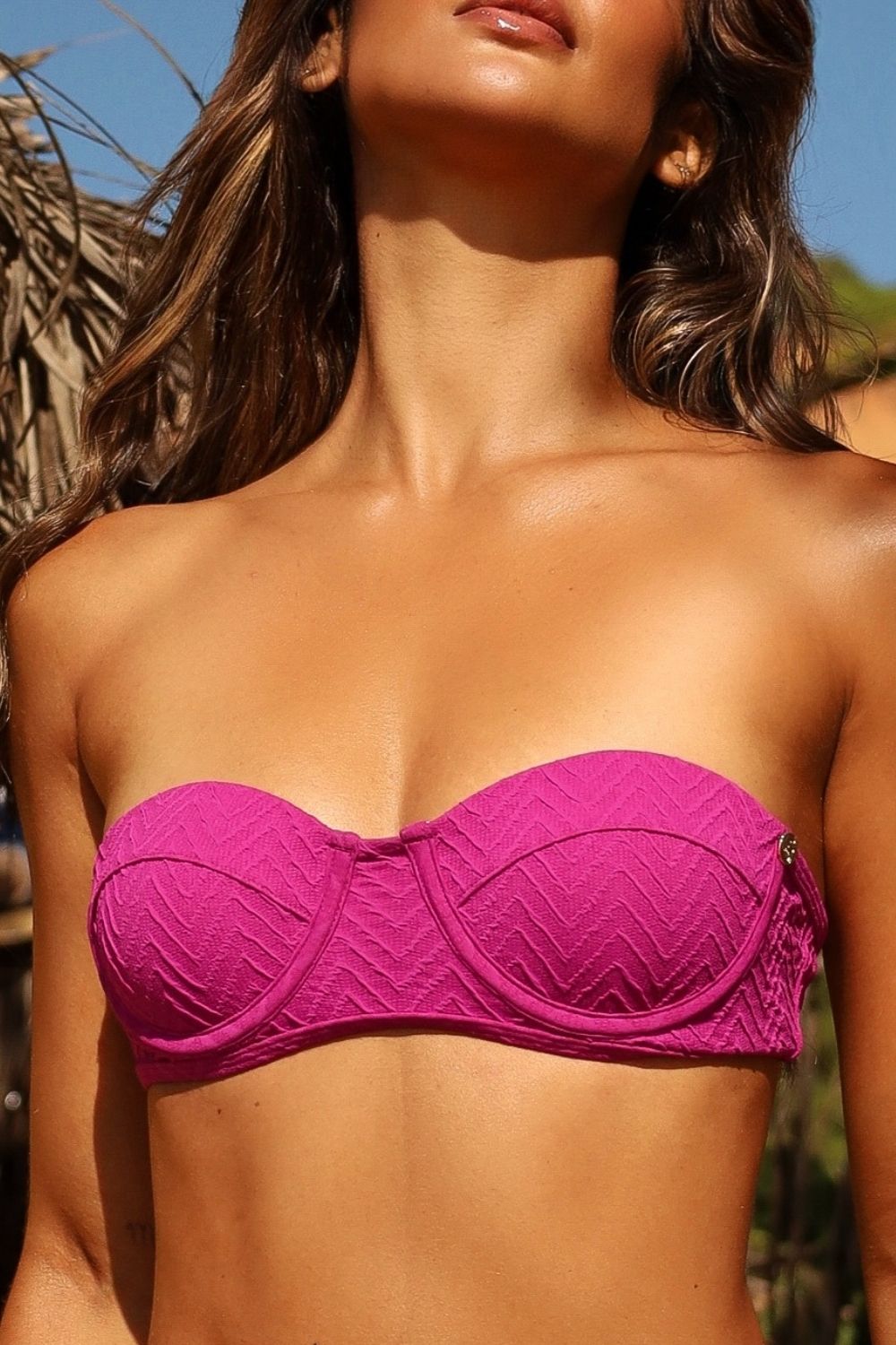 Com modelagem meia-taça, este top de biquíni oferece um caimento que valoriza naturalmente os seios, proporcionando sustentação suave e um formato arredondado que embeleza o busto com discrição e elegância.